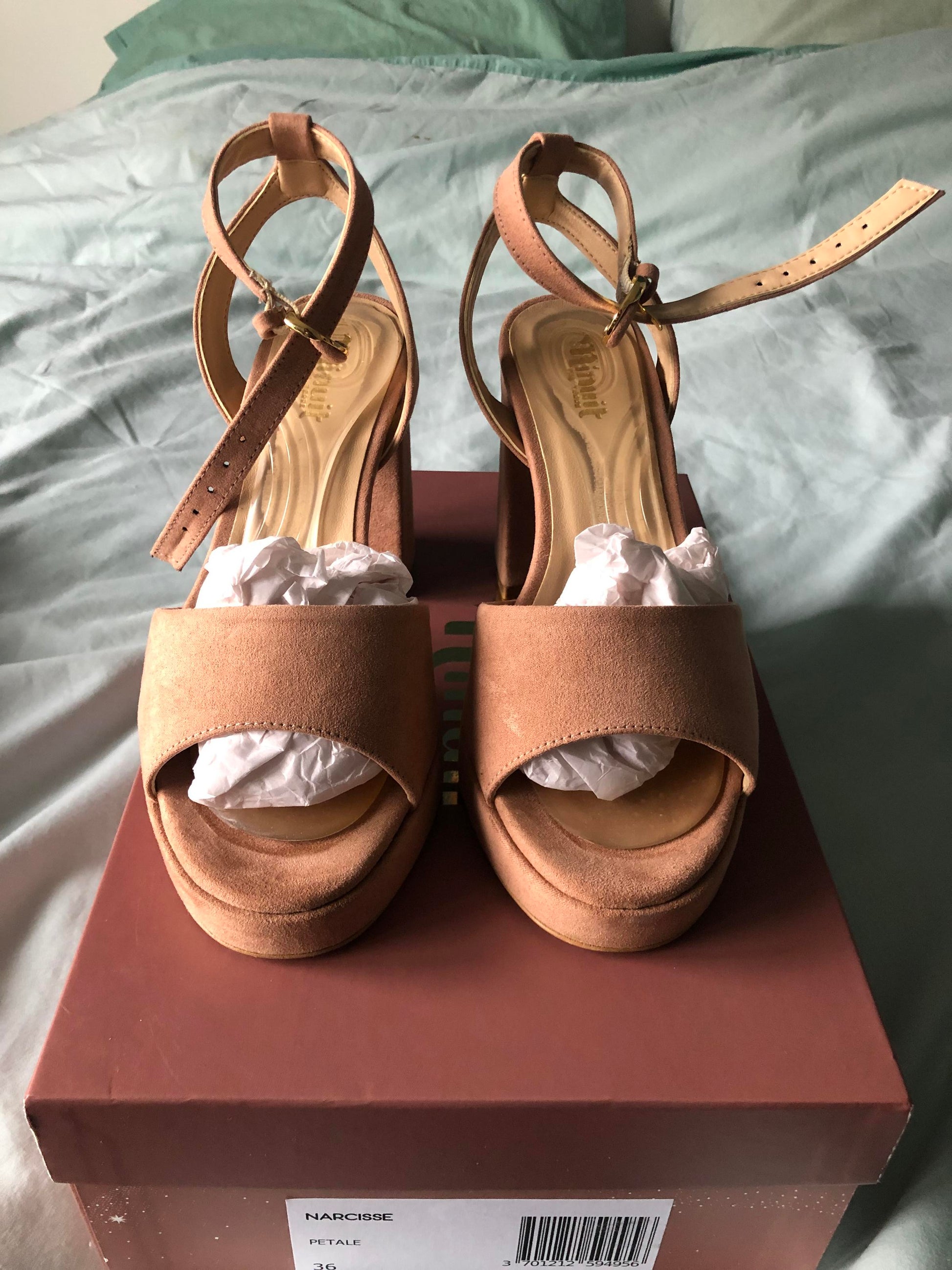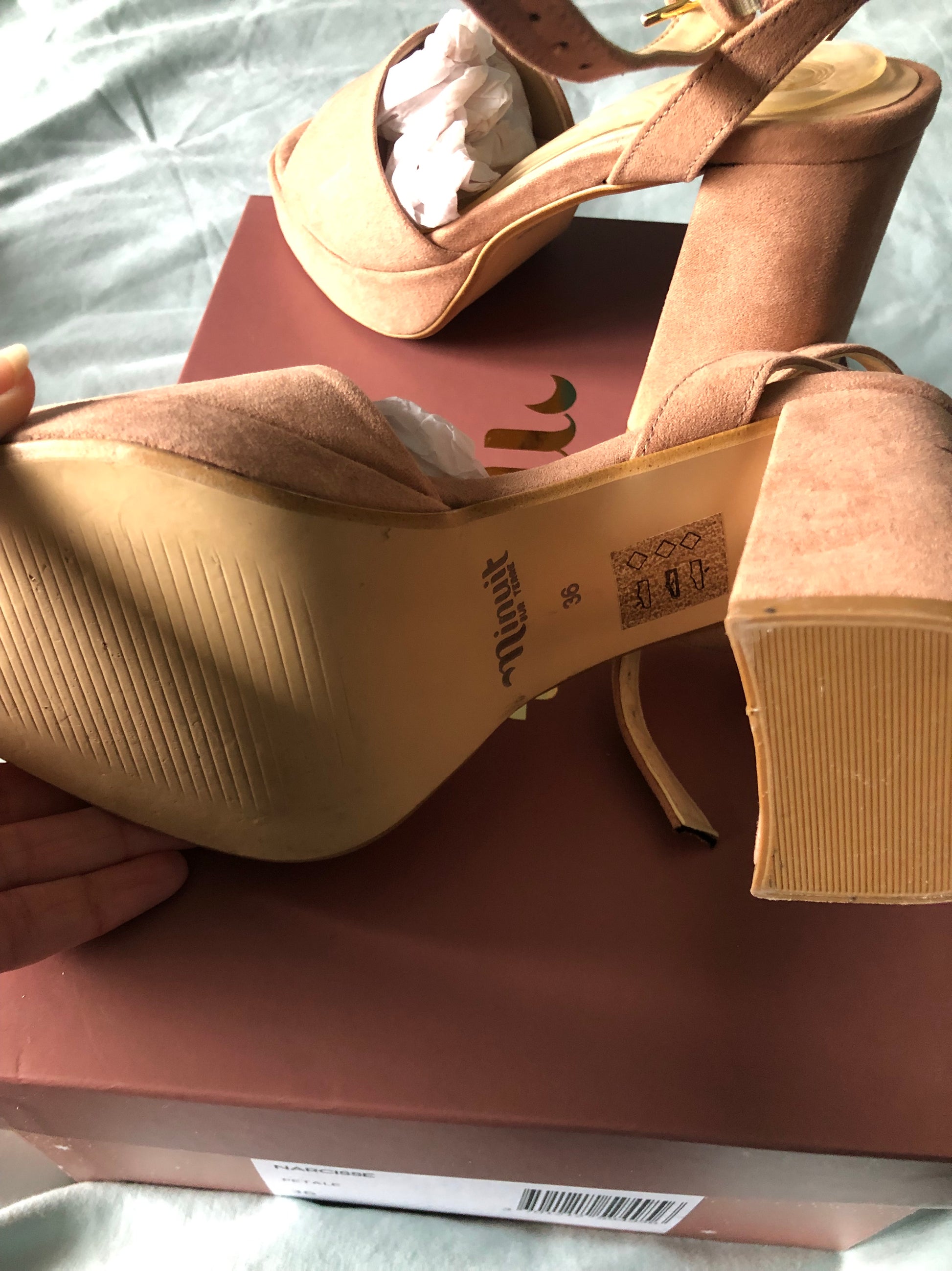 Bought for 145€, slightly too big, worn once. I would remove the Scholl insoles before sending