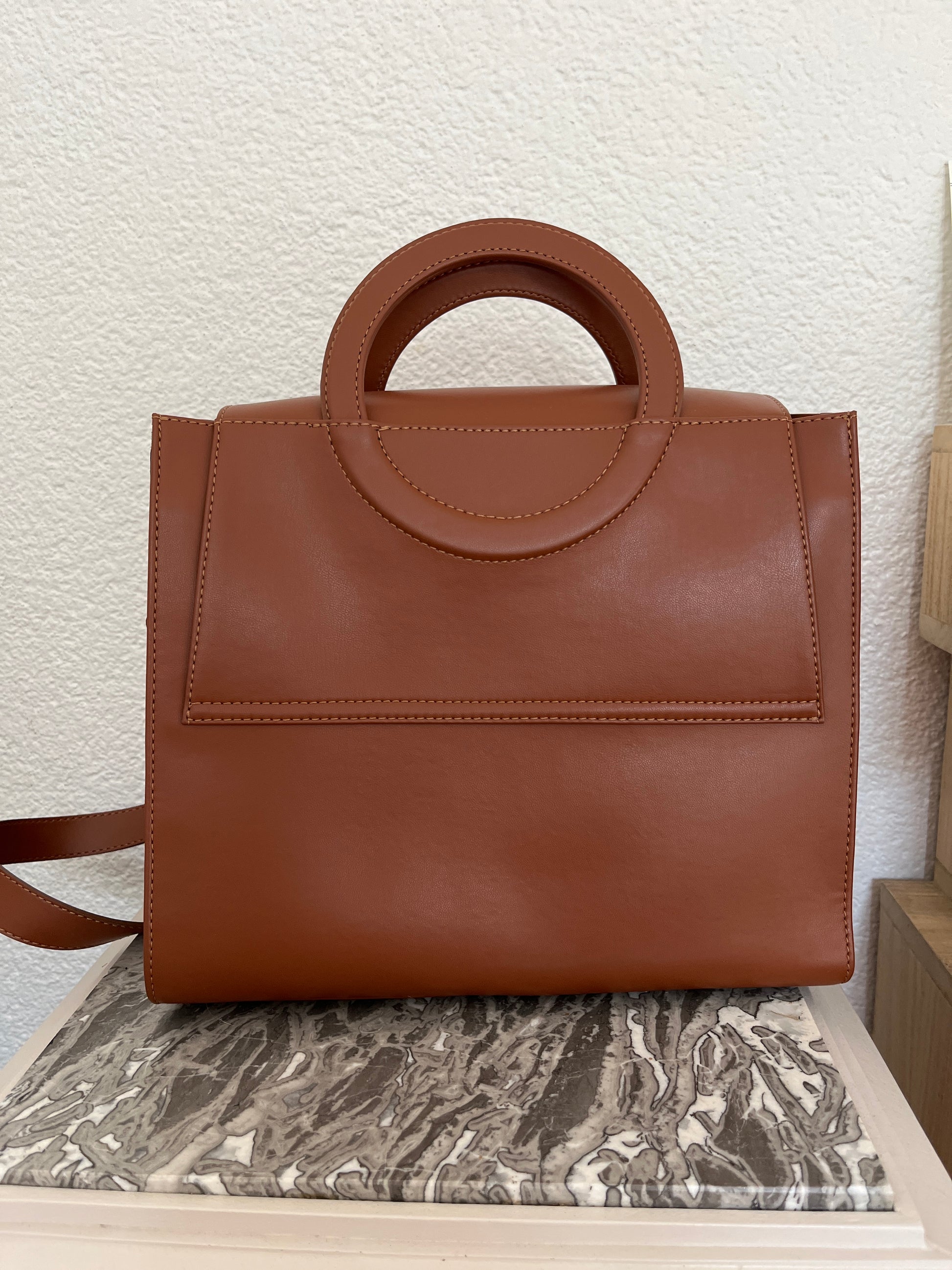 • Round gold clasp on the front