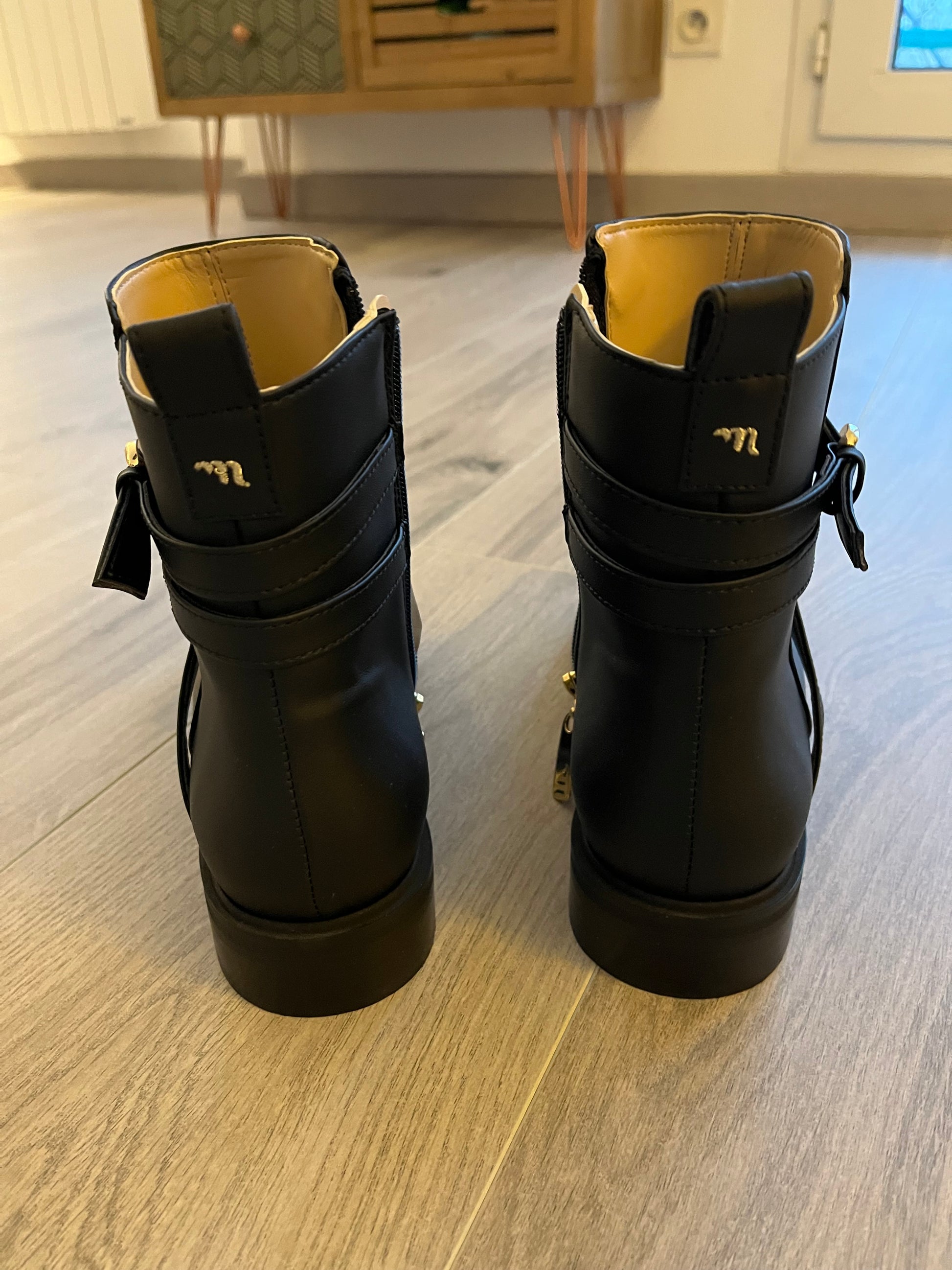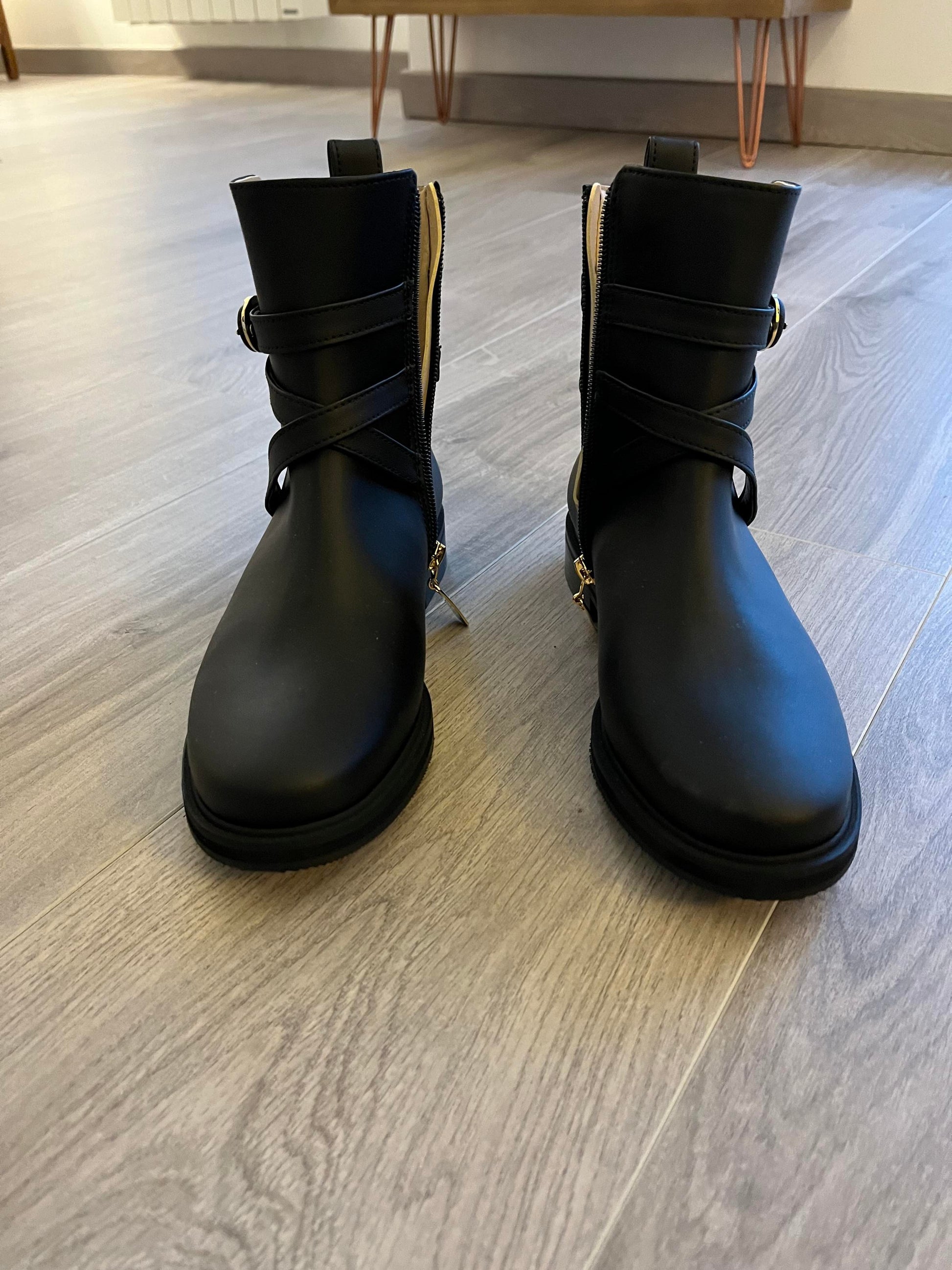These boots have never been worn. They are too big for me.