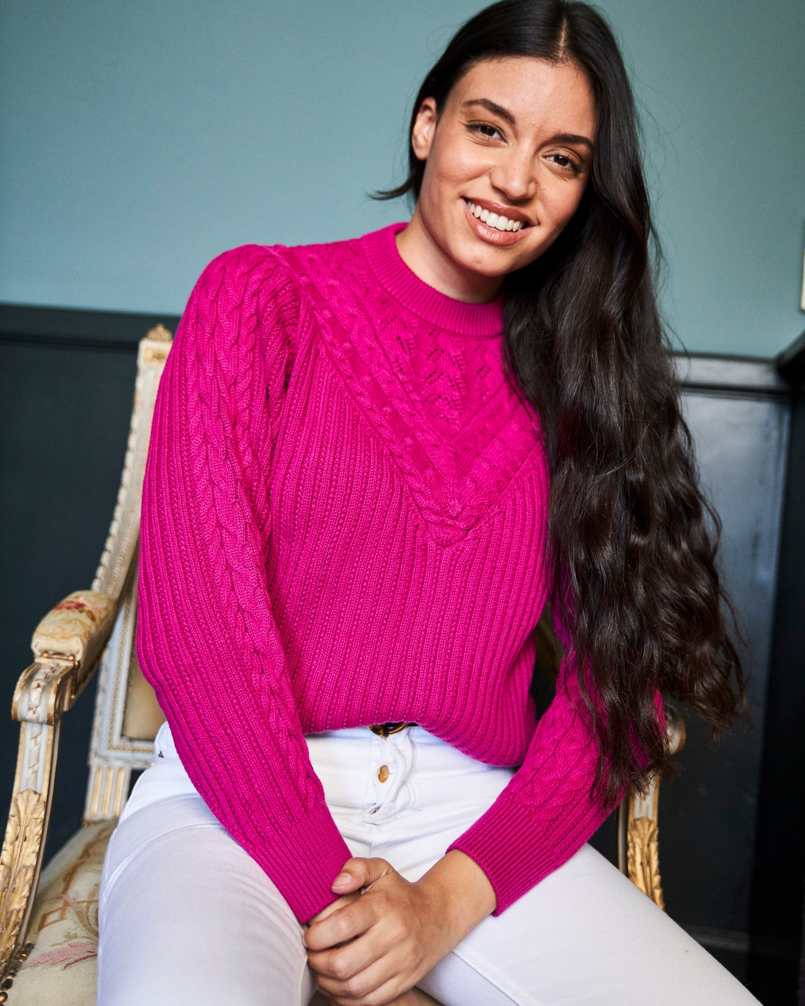 Miriam mesure 1m70 et porte une taille S. Choisissez votre taille habituelle.