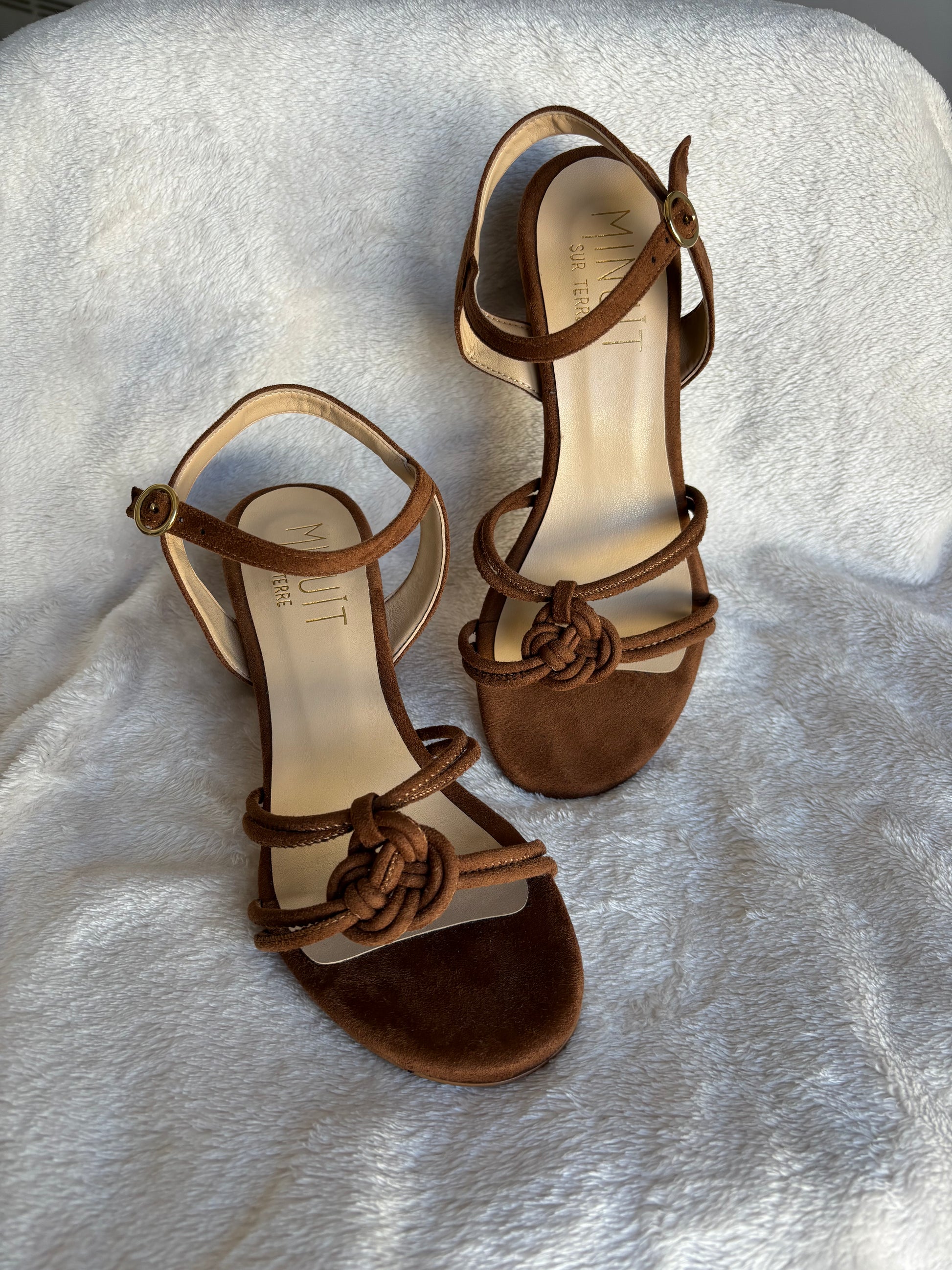 Découvrez la version à talon de nos sandales Azulejo : leurs liens entrelacés et leur matière douce mêlent douceur et raffinement !