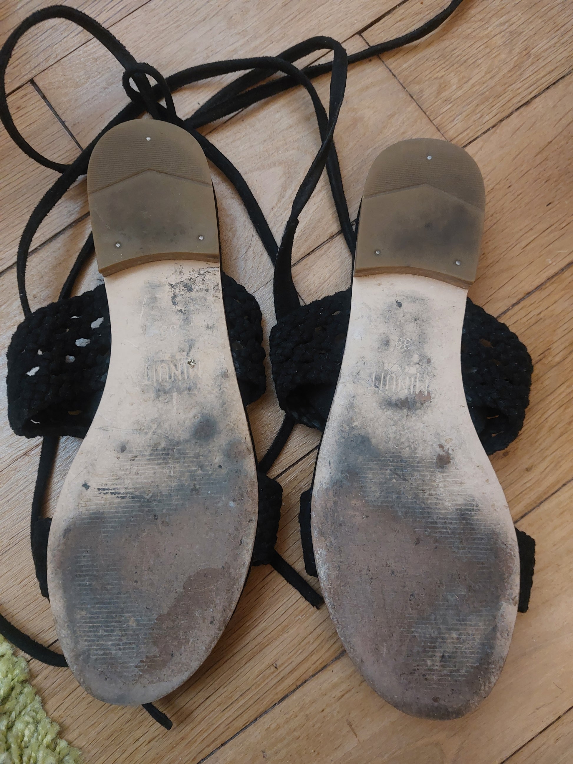 Je ne les porte plus. Elles ont été portées quelques fois. La couleur est intact, quelques traces d'usures peuvent être présentes en dessous sur la semelle.