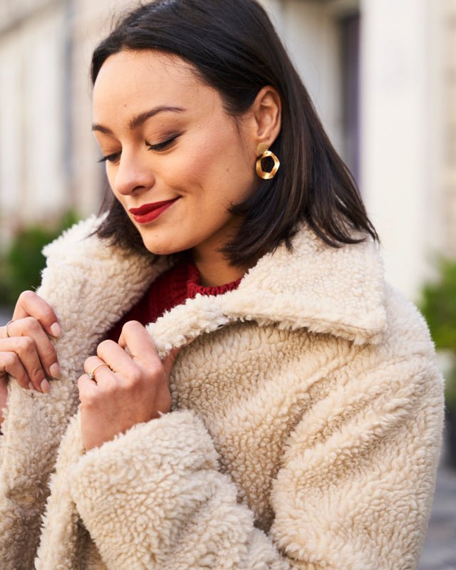 Si vous voulez porter votre manteau avec une robe ou un pull fin, choisissez votre taille habituelle. Si vous préférez le porter avec un gros pull, ou que vous avez une poitrine généreuse, choisissez la taille au-dessus 😉